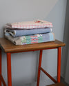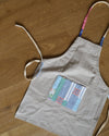 Jeg bruger primært genbrugte og overskydende materialer som deadstock-stoffer, loppefund og tekstiler fra min farmors stoffund. Det gør hvert forklæde bæredygtigt, unikt – og fuld af historie.