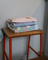 Jeg bruger primært genbrugte og overskydende materialer som deadstock-stoffer, loppefund og tekstiler fra min farmors stoffund. Det gør hvert forklæde bæredygtigt, unikt – og fuld af historie.